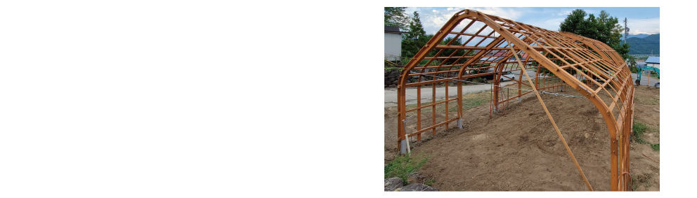 こちらの新工法の木造ビニールハウスは、湾曲した部材のみをご提供いたします!