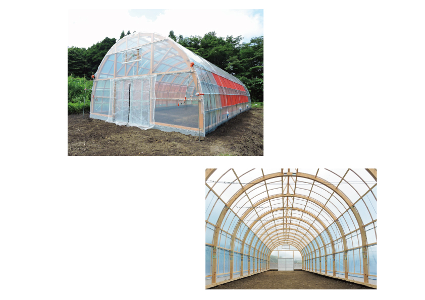 この木製農業用ビニールハウスは、雪国での農業の普及を目指し開発いたしました。
