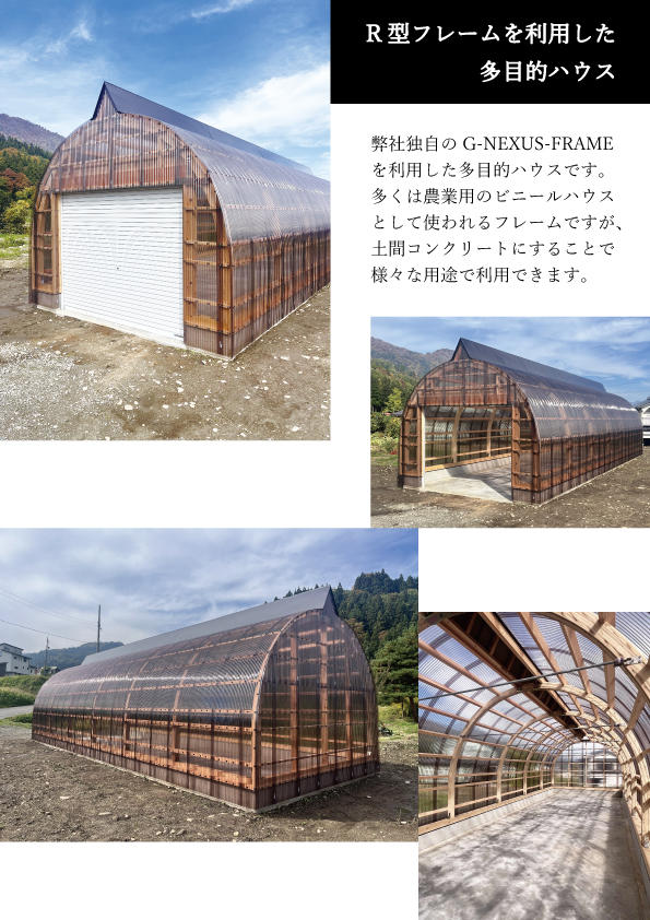 R型フレームを利用した多目的ハウス