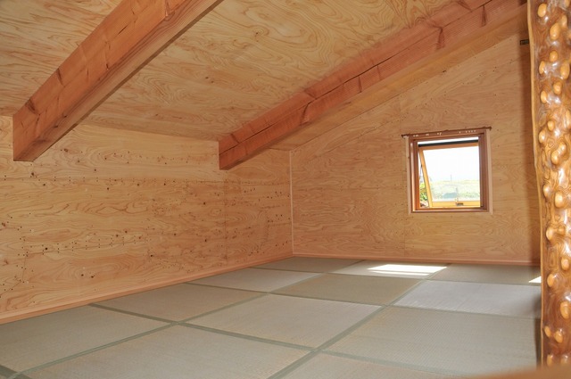 施主様が提案した断熱材は 半くん炭状のもみ殻です。それに粒子状の発泡スチロールを混ぜた断熱材です。このくん炭にしたもみ殻は防虫・消臭・湿度調節の効果があります。